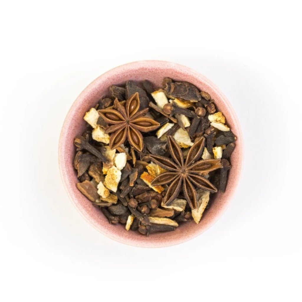 Zloženie: Škorica, celý klinček, badyán, citrónové oplodie, pomarančové oplodie.